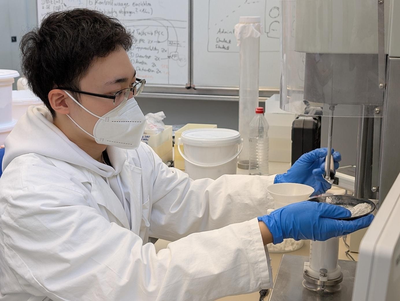 Zum Abschied erhielt Herr Horiuchi einen selbst gefertigten 3D-Druck FT4 Vessel, an dessen Design er im Rahmen seines Forschungsaufenthalts mitgewirkt hat. Der funktionale Prototyp ist bereits in unserer Pulverrheologie im Einsatz – ein kleines, aber bedeutungsvolles Andenken an seine vier Wochen bei uns.